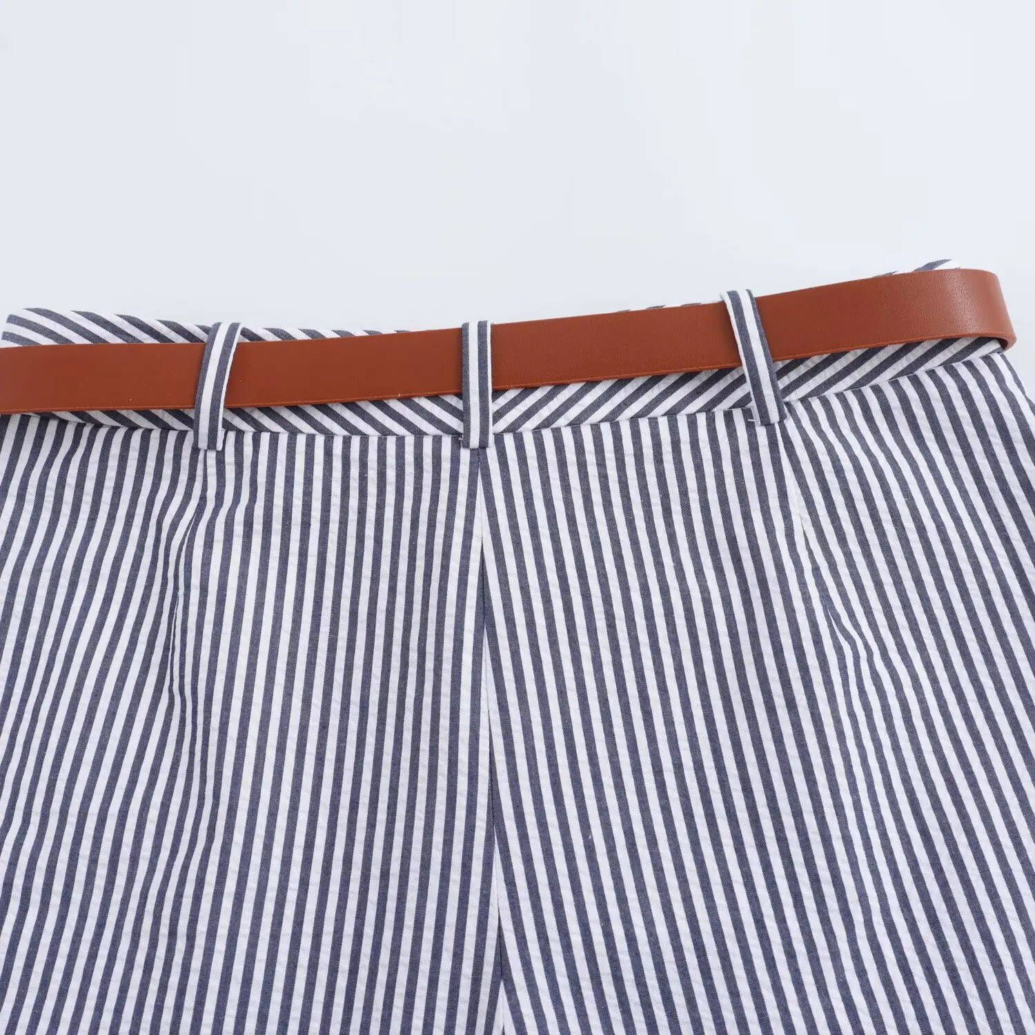 ✨ Short Saia Listrado com Cinto – Promoção Especial ✨
