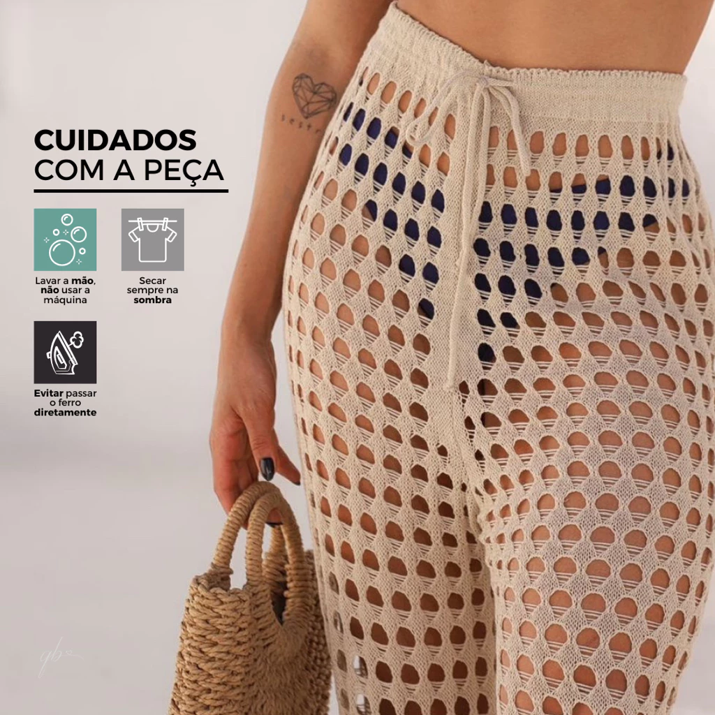 Calça Feminina Saída de Praia Tricô Crochê Slim e Plus Size Moda Verão Praia Piscina 2026